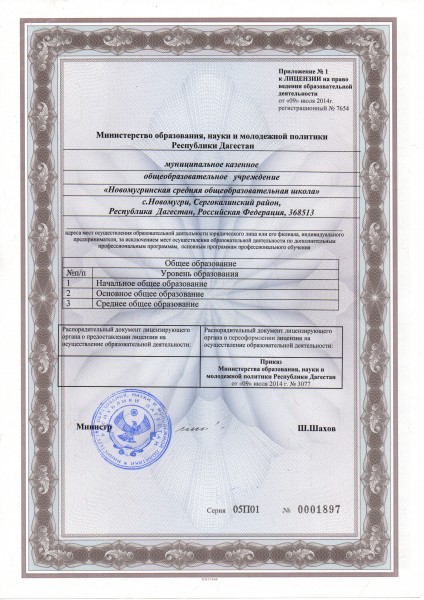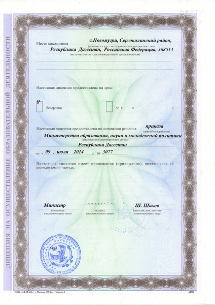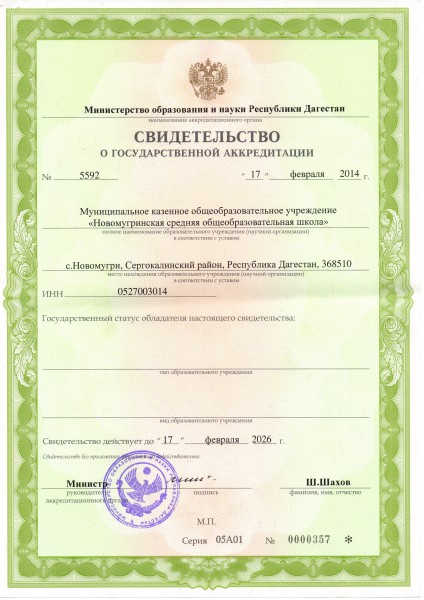 | Адрес местонахождения образовательной организации* | 368513, Республика Дагестан, Сергокалинский район, с.Новомугри |
