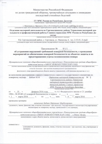 Предписания органов, осуществляющих государственный контроль (надзор) в сфере образования, отчеты об исполнении таких предписаний (при наличии)